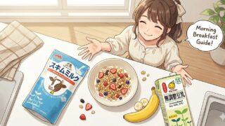 朝食にスキムミルクをプラス。常温保存で買いだめOK、たんぱく質・カルシウムを手軽に補える食材です。