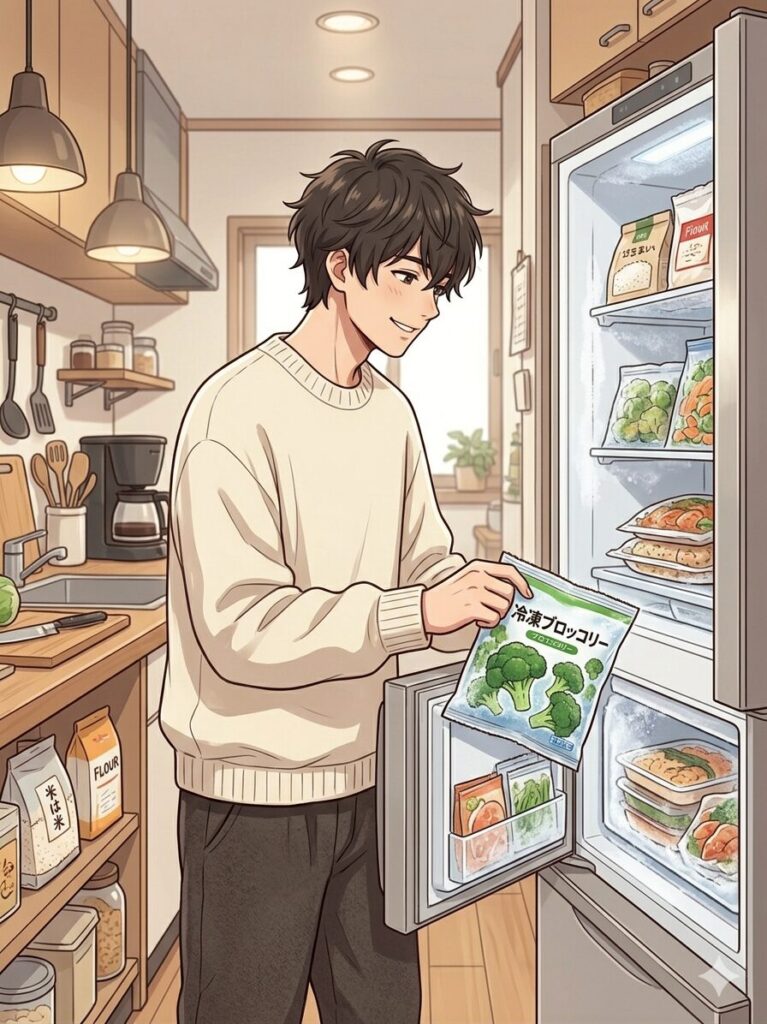 自炊しない生活で一番不足しがちなのが野菜です。コンビニのサラダは手軽ですが、毎日買うとコストがかさみます。そこで活用したいのが冷凍野菜です。
